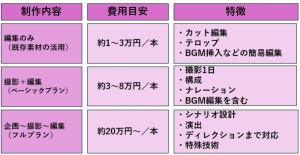 ただし、プロモーションなどの演出が必要だったり特殊技術などにより、より高額になる場合もあります。