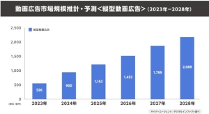 スマートフォン視聴の増加とSNSの縦型最適化が進んだことで、2024年の縦型動画広告市場は前年比171.1%増の約900億円に拡大しています。動画広告全体に占める割合も、2023年の8.4%から12.4%へと急伸しました。