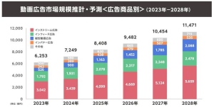 日本国内の動画広告市場は拡大を続けており、2024年には昨年対比115.9%の 7,249億円に到達しました。2028年には1兆1,471億円に達する見込みです。