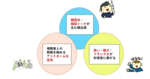 関西企業には、人との距離を縮めるコミュニケーションが根付いています。関西弁の柔らかい響き、ツッコミや雑談まじりのトーク、テンポの良いやり取りなど、これらの文化は、YouTubeとの相性が良く、大きなメリットです。