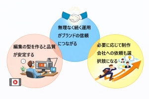 企業YouTubeを継続して成果につなげるには、編集スキルよりも「無理なく作り続けられる仕組みづくり」が欠かせません。